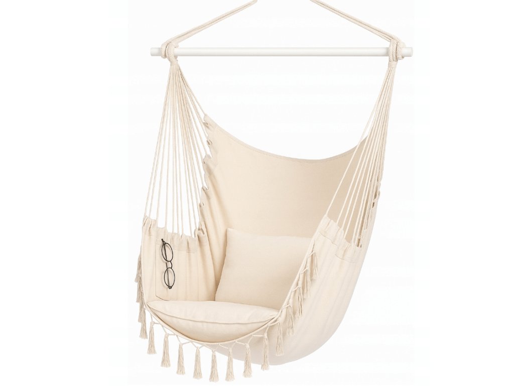 Brazílske závesné kreslo s vankúšmi a vreckom – 90 cm, nosnosť 150 kg