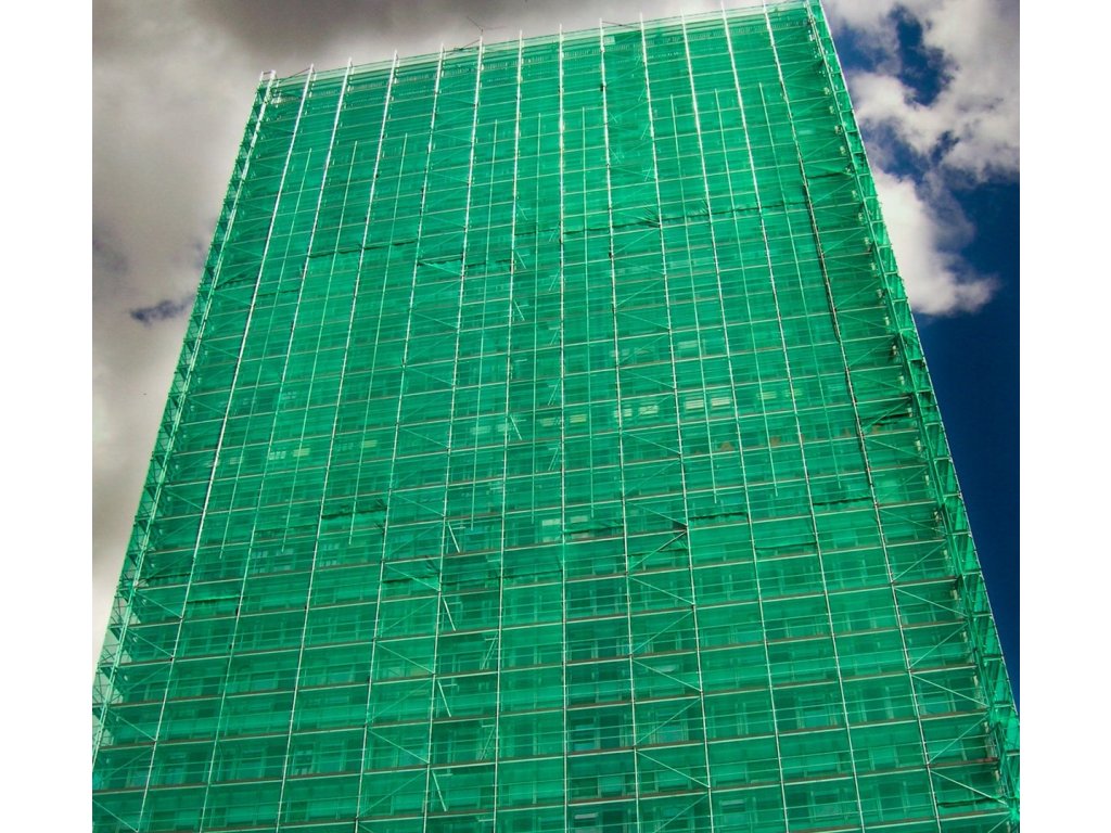 Ochranná sieť na lešenie 60 g/m² v zelenej farbe. Odolná HDPE sieť s UV stabilizáciou chráni lešenie, fasády aj rastliny pred vetrom, prachom a slnkom.
